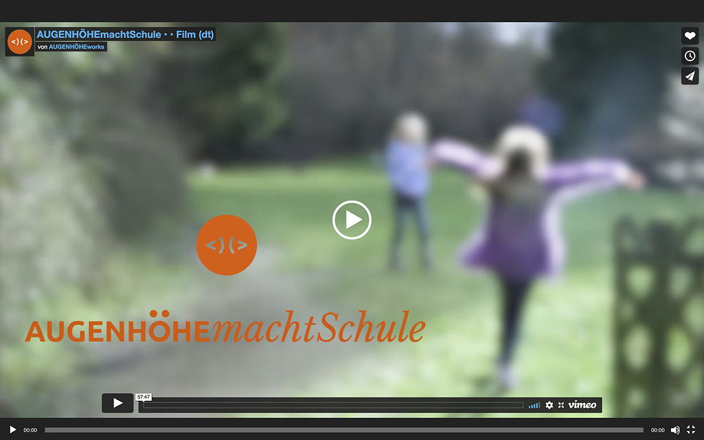 Wenn du auf das Bild links bzw. oben klickst, musst du in dem neuen Tab etwas nach unten scrollen, um zum Film Augenhöhe macht Schule zu gelangen. Es ist ein sehr inspirierender Film, der zeigt, wie einige Schulen schon heute Bildung verstehen und vermitteln.